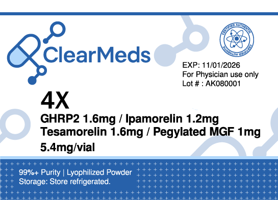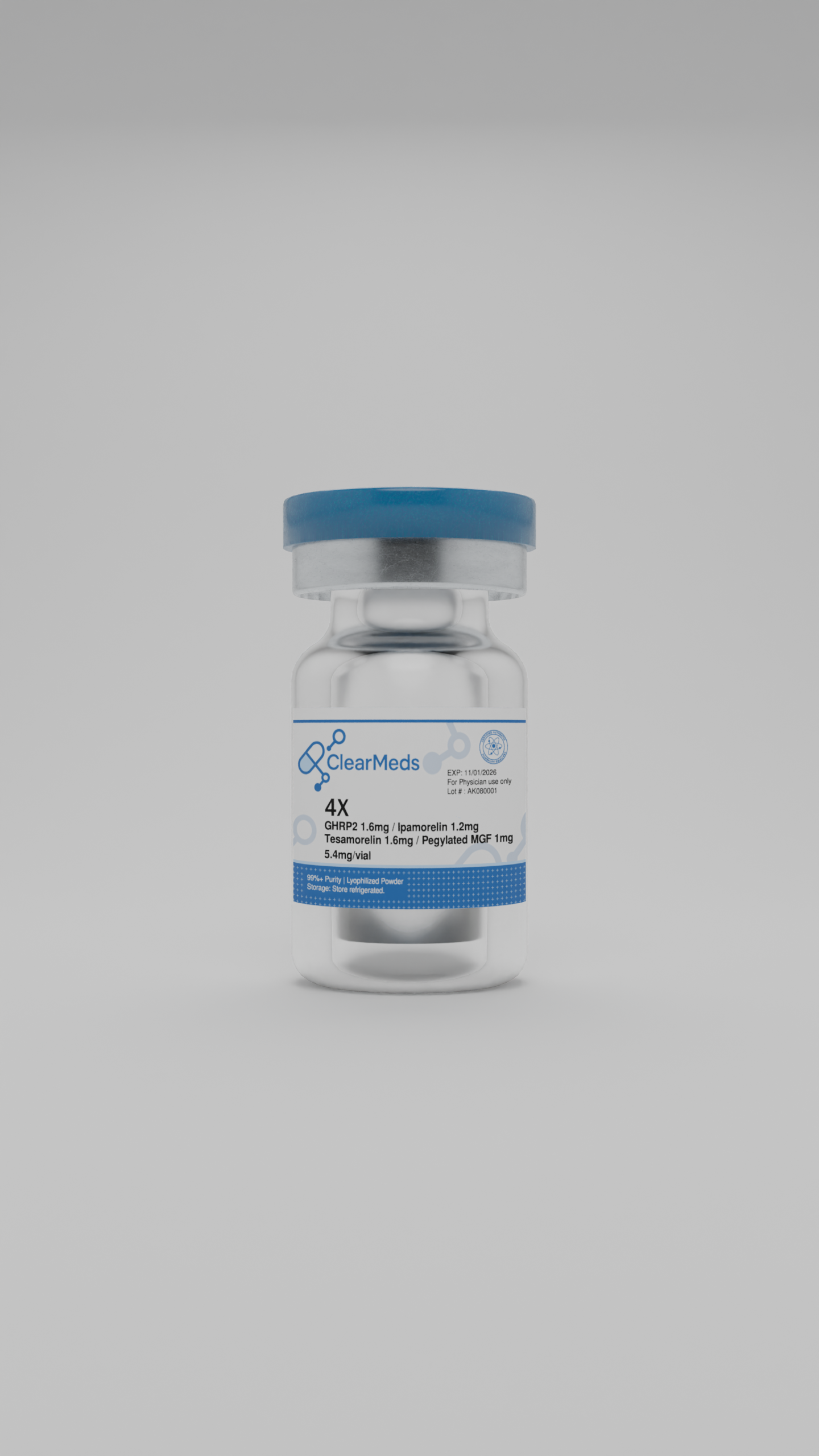 This 4-peptide blend supports powerful GH release, muscle repair, and improved body composition by combining GHRP-2, Tesamorelin, MGF, and Ipamorelin. Designed to enhance performance, recovery, and lean muscle development.